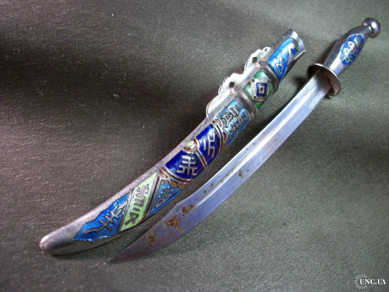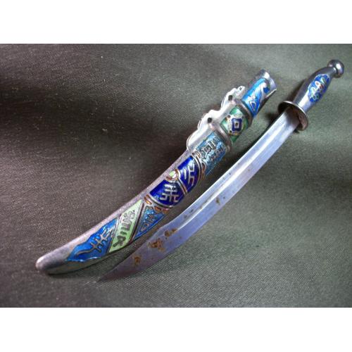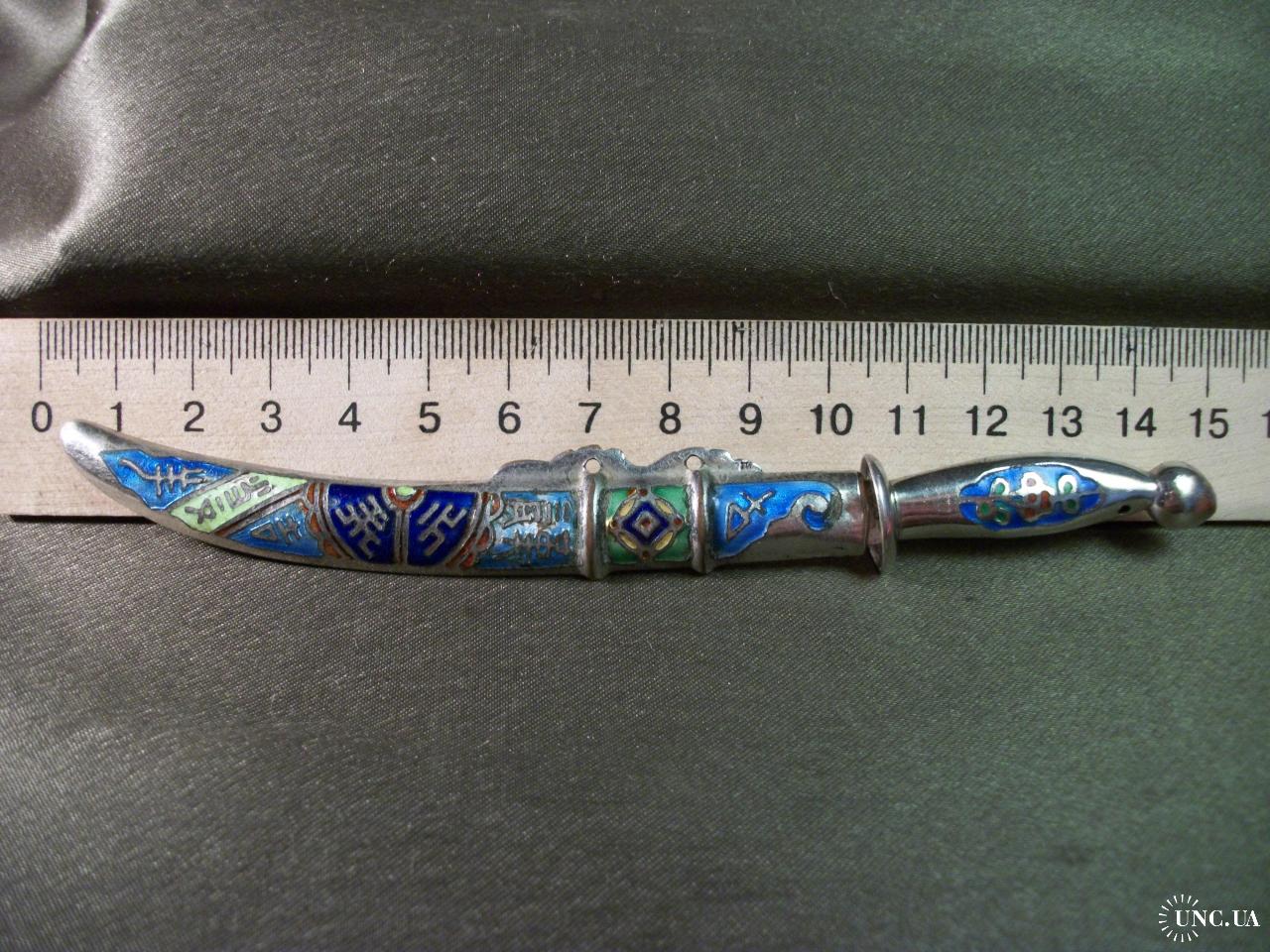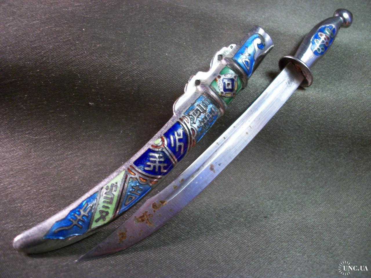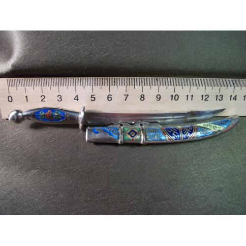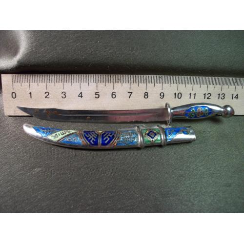 5.719 Нож для писем, бумаг, конвертов. Эмаль, клуазоне. Ножны из не магнитного металла, лезвие из железа.