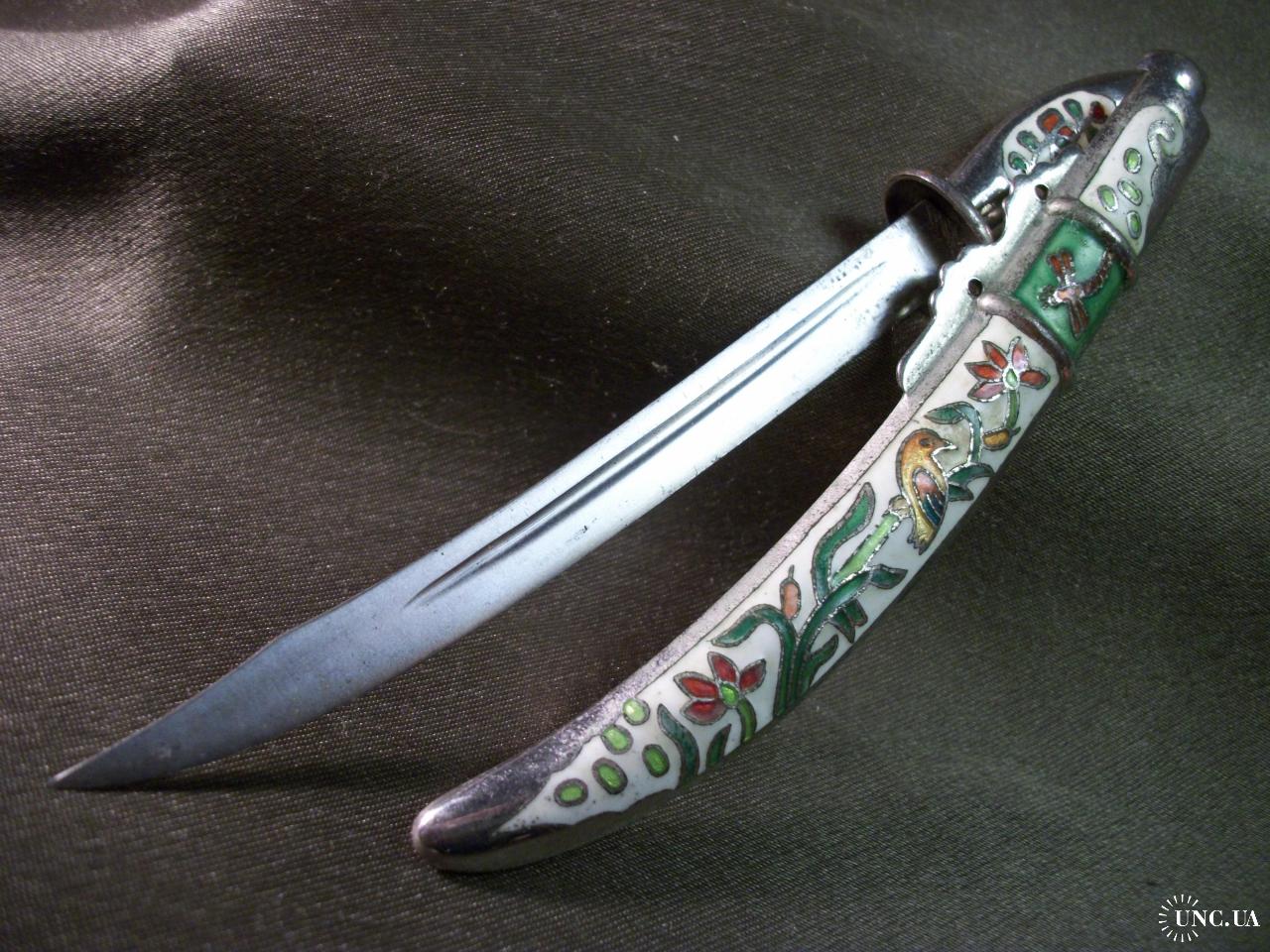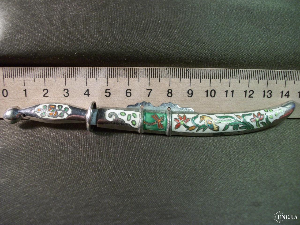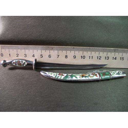 1981-20005.720 Нож для писем, бумаг, конвертов. Эмаль, клуазоне. Ножны из не магнитного металла, лезвие из железа.