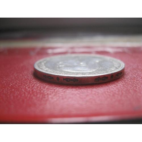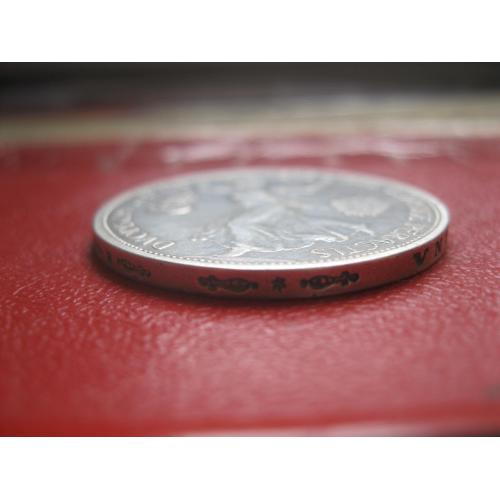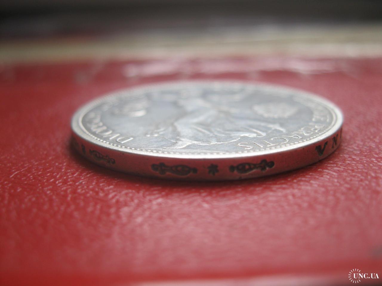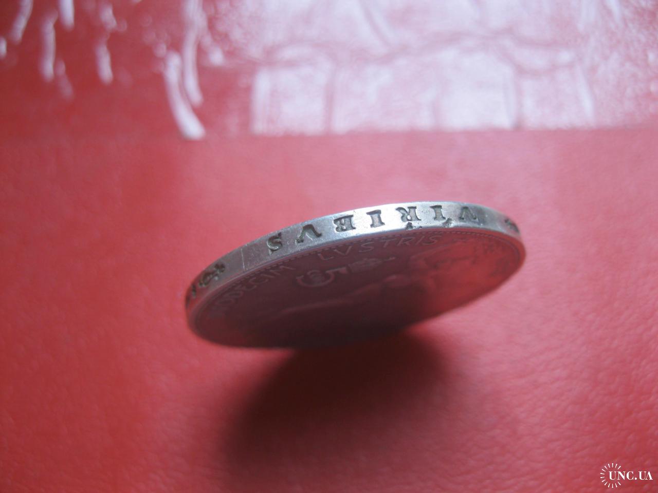 . По каталогу вес: ~24 г.Диаметр: 36 мм.Материал: серебро 900-ой пробы.Гурт: вдавленная надпись "VIRIBUS UNITIS" - "Объединёнными усилиями".