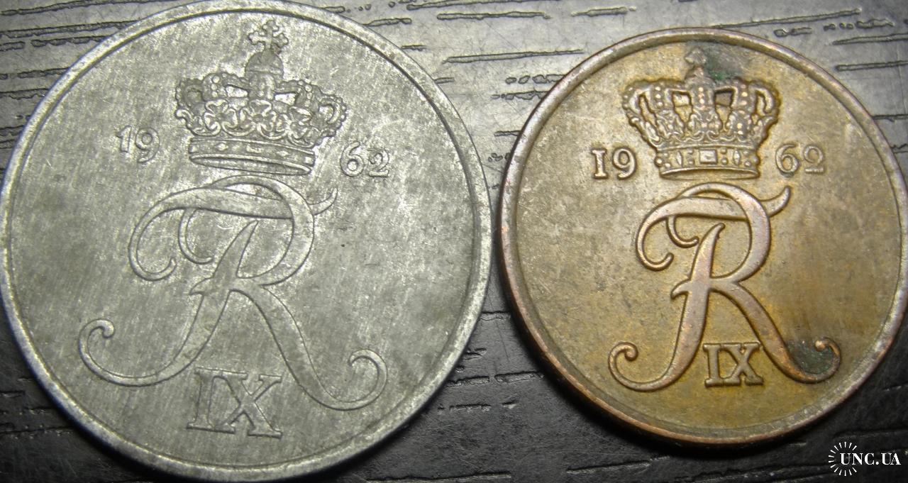 5 ore Denmark 1962 (different types) / 5 оре 1962 Данія (два різновиди)