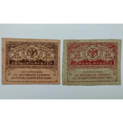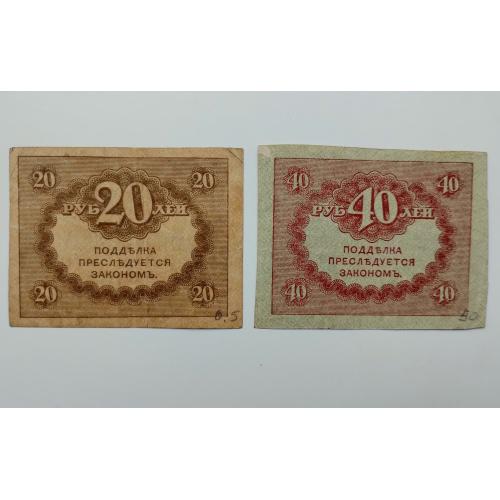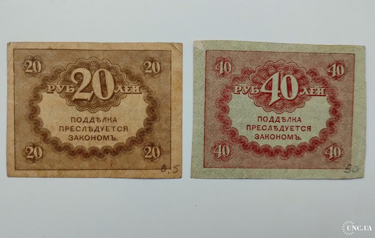 наявний20 та 40 рублів 1917 року, стан банкнот по світлинах.