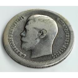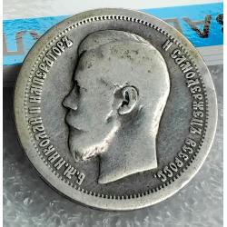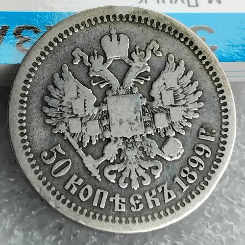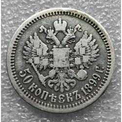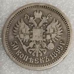ОригіналЦарские 50коп. 1899г. Николай 2 (серебро 900пр.) 'одна ☆',состояние коллекционное. Оригинал, гарантия подлинности пожизненная!
