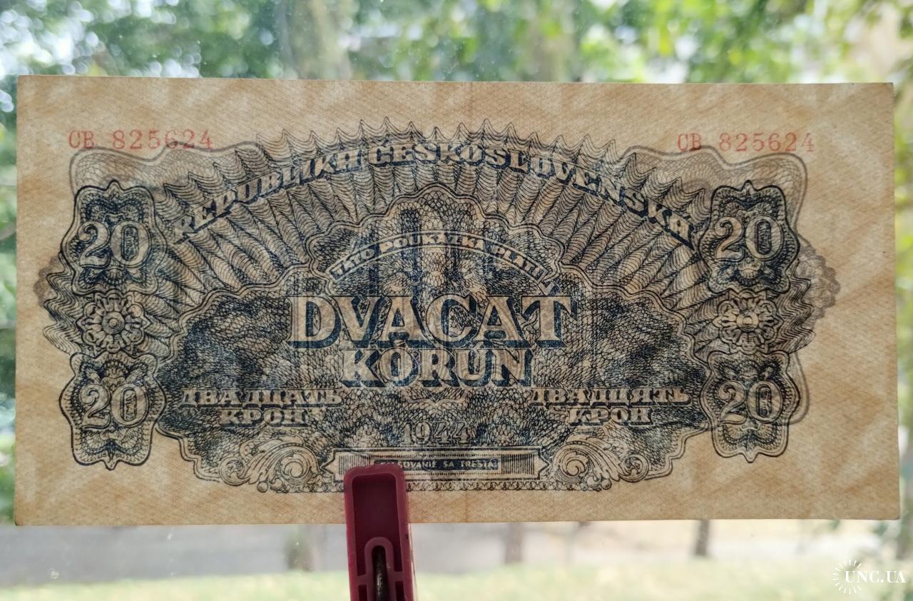 наявний20 крон 1944 року, Чехословаччина, стан банкноти по світлинах.