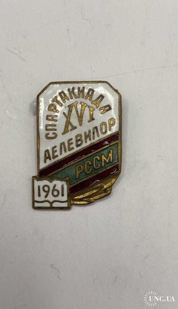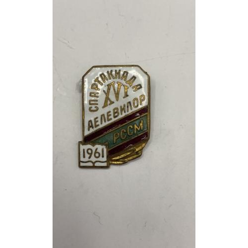1961-19806к98 Знак. Молдавия, Молдавская ССР, МССР, спорт, 16 спартакиада Аелевилор, 1961, РССМ. Эмаль, тяжелый металл.
