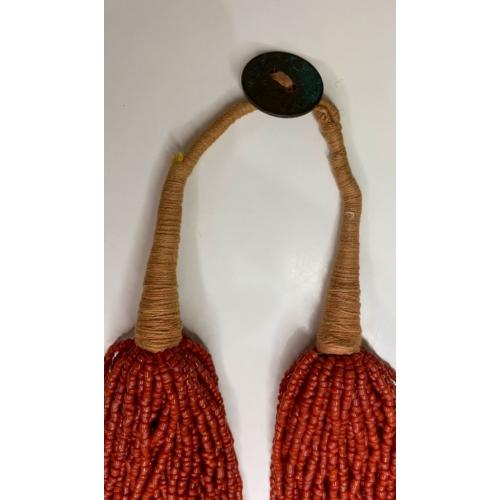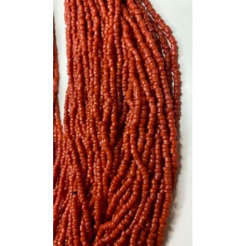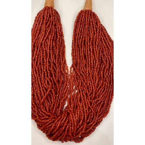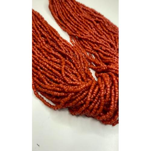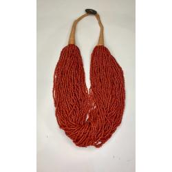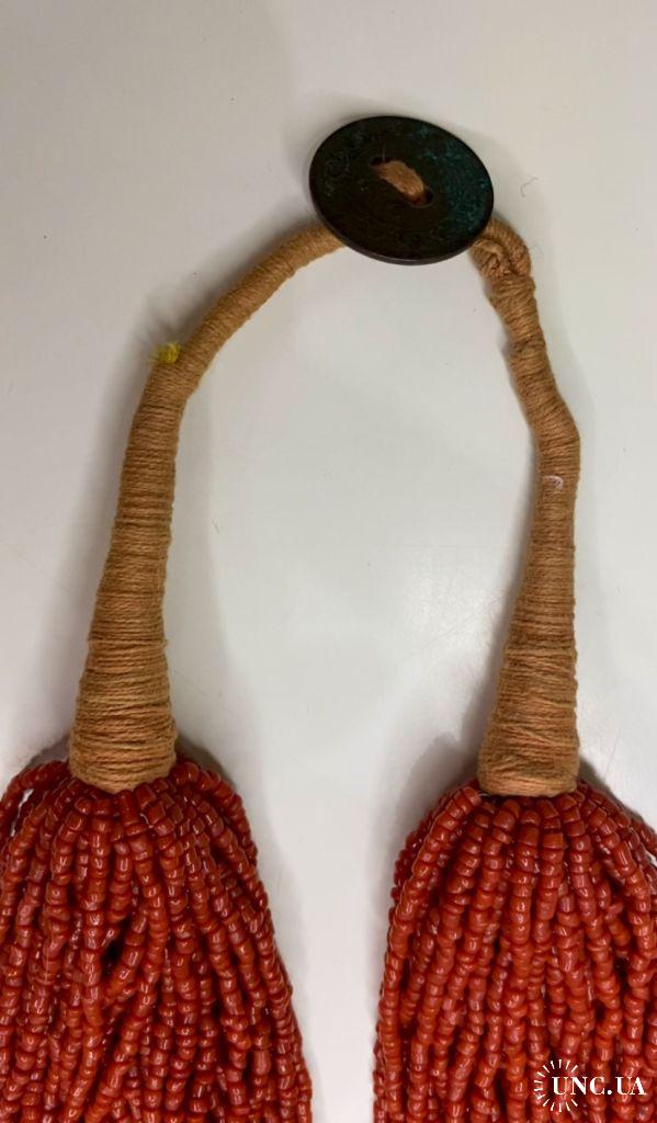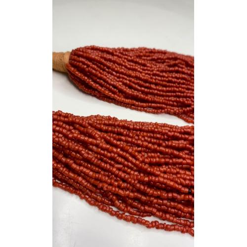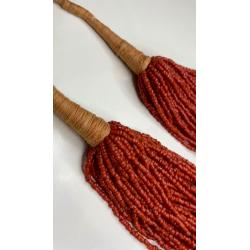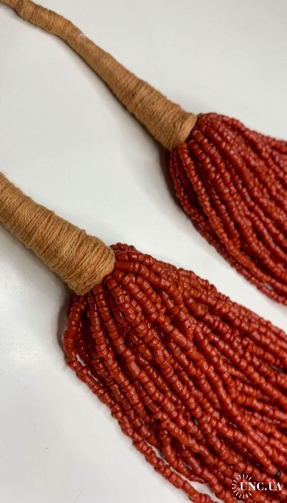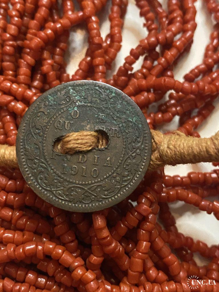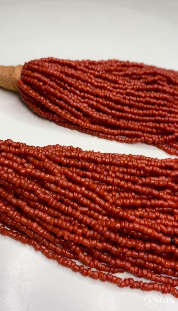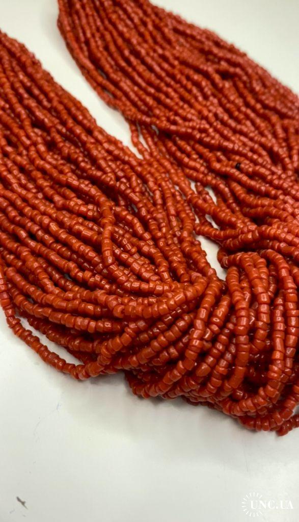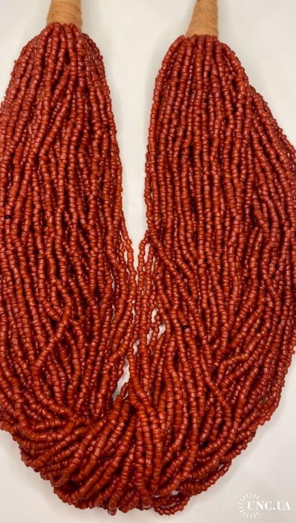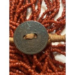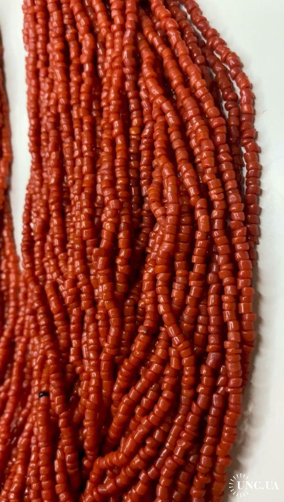 1981-20006lt10 Бусы, ожерелье, красная смальта. Застежка с монеты Индия 1910. 50 ниток. Общая длина 60 см