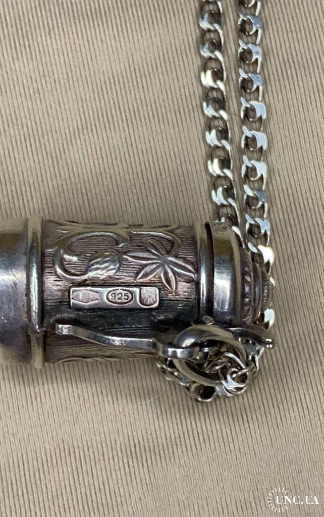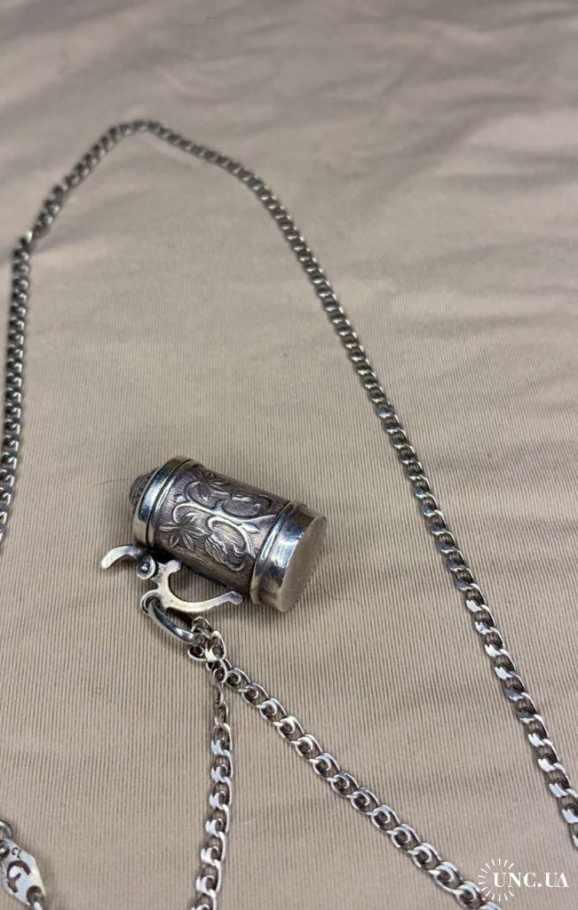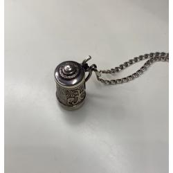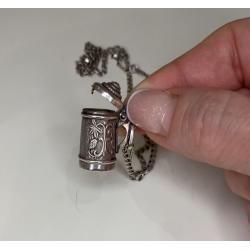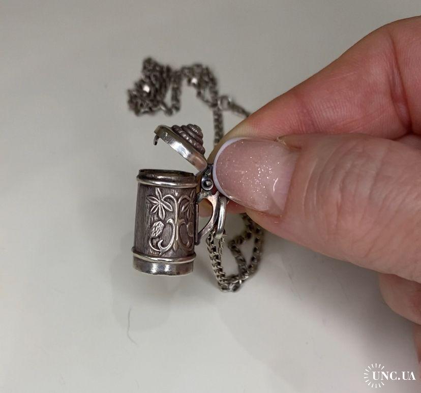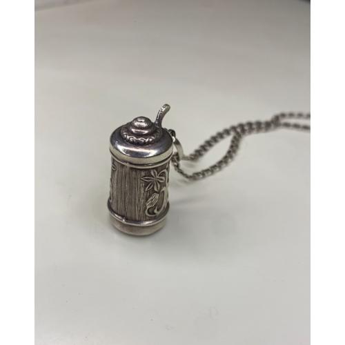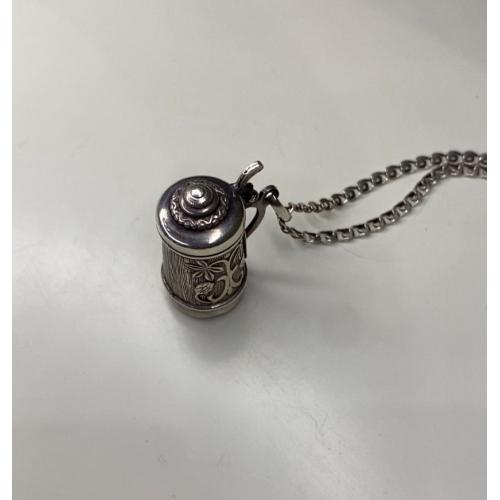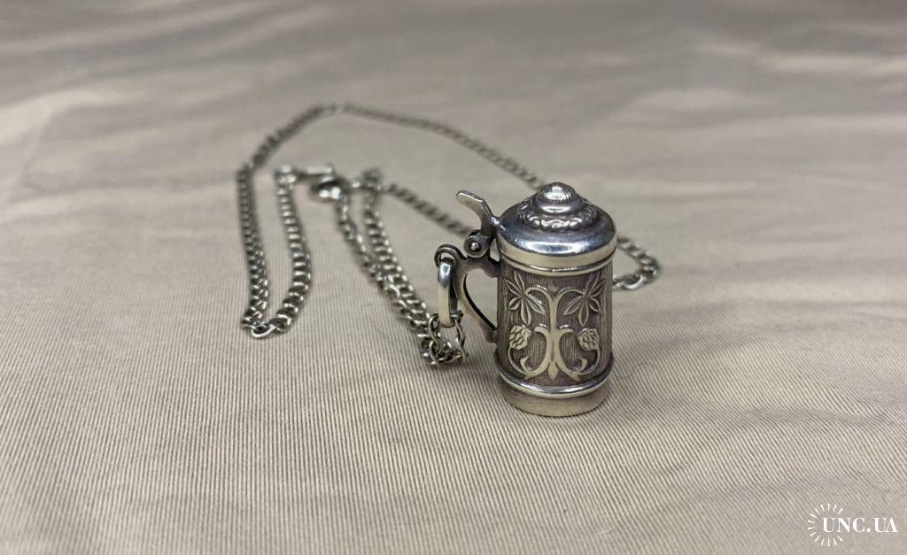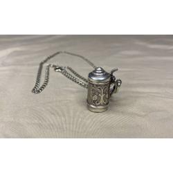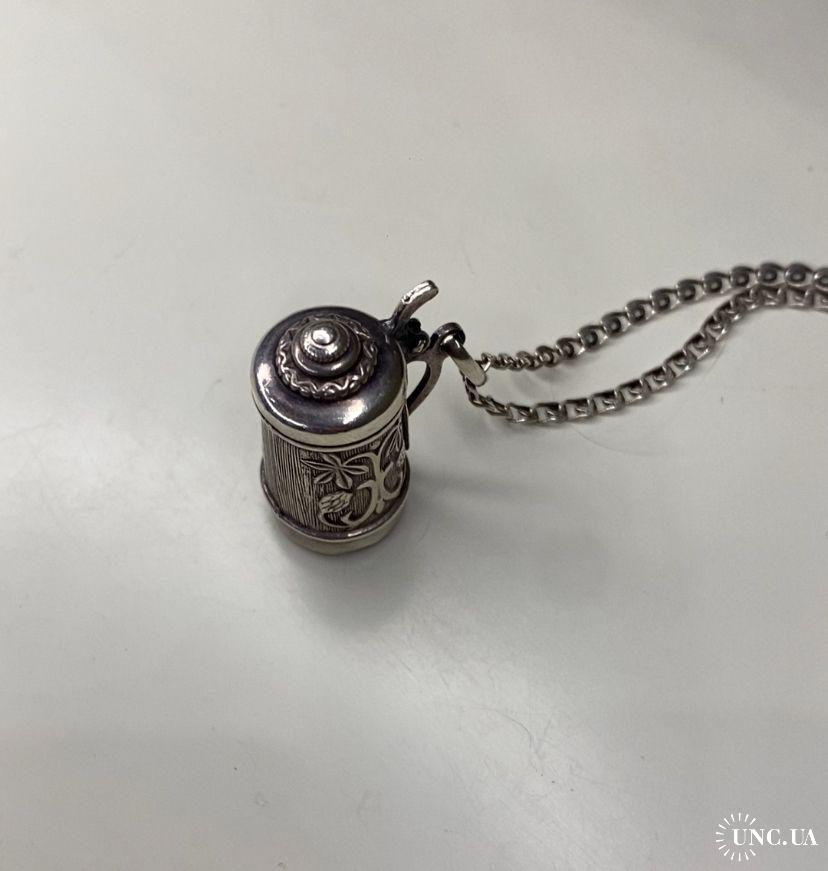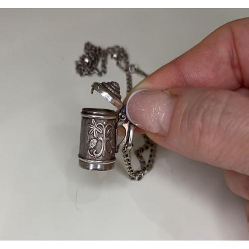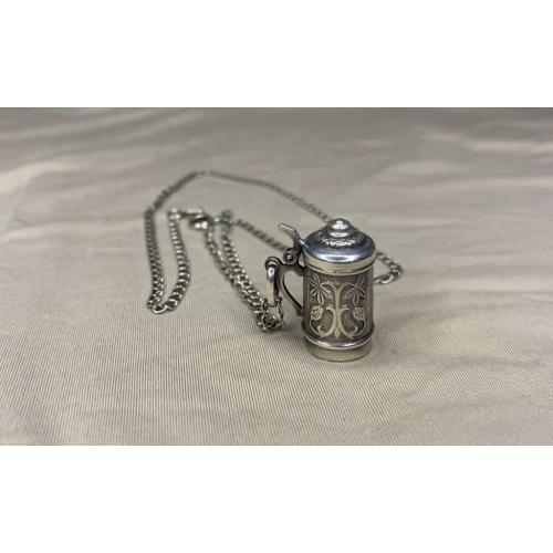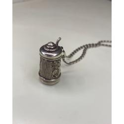 1981-20006lt41 Кулон пивная кружка с цепочкой. Крышка открывается. Серебро 925. Вес 7 грамм. Высота кружки 2,3 см