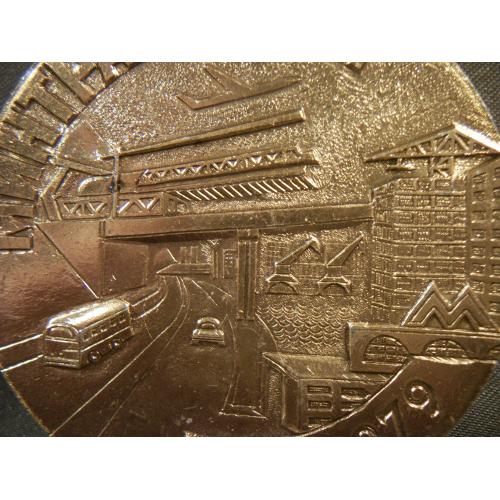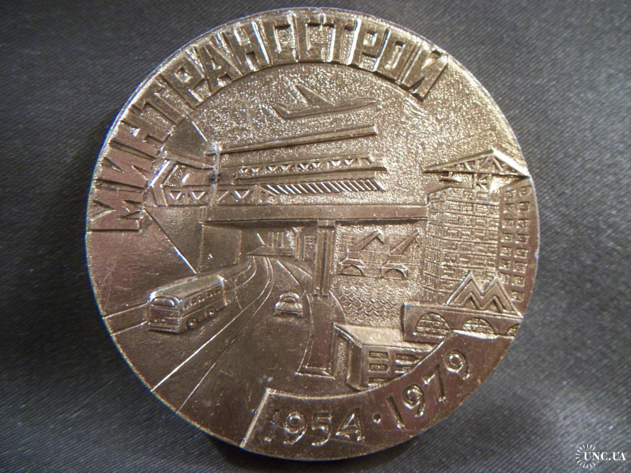 7F85 Памятная медаль, 25 лет Минтрансстрой 1954-1979. Диаметр 6 см. Легкий металл
