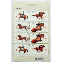 Кількість марок в аркуші: 8 марок (4 різні сюжети: виїздка, перегони, біги та конкур).