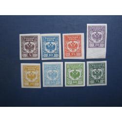 8 марок Громадянська Війна Руська пошта 1918 Авалов-Бермонд без зубців MNH