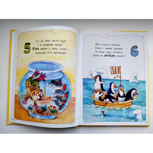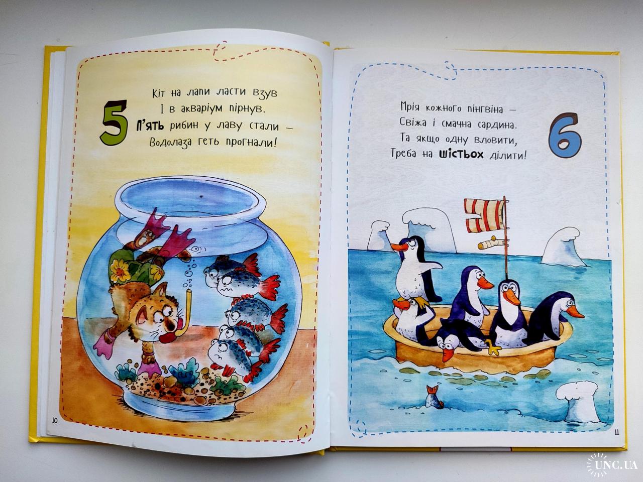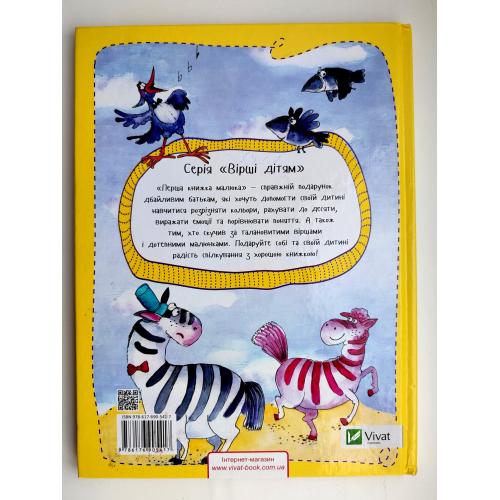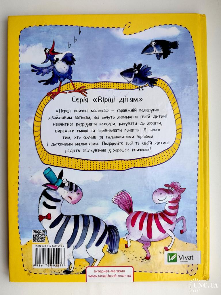 Перша книжка малюка справжній подарунок дбайливим батькам, які хочуть допомогти своїй дитині навчитися розрізняти кольори, рахувати до десяти, виражати емоції та порівнювати поняття. А також тим, хто скучив за талановитими віршами і дотепними малюнками.