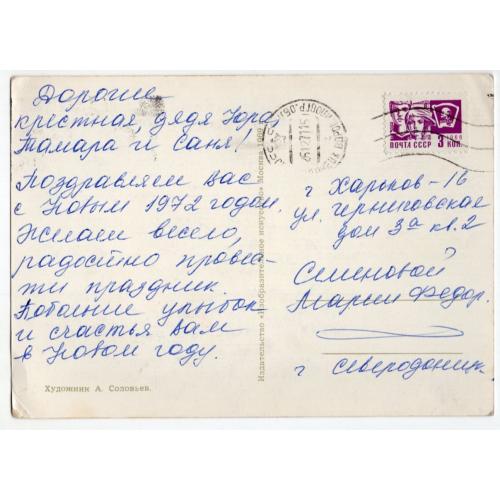 А. Соловьев С новым годом! 1969 Изобразительное искусство прошла почту Северодонецк