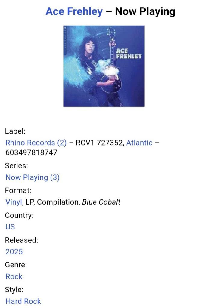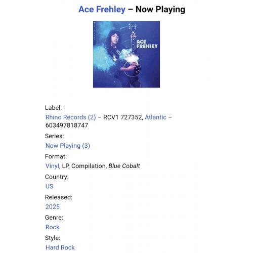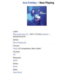 Вінілова платівка. Офіційна збірка найкращих хітів, Американського хард-рок, глем метал музиканта, учасника легендарної групи Kiss, покійного вже, Пола Деніела Ейс Фрейлі (Now Playing) 1978-2024. Випуск фірми (Rhino Records / Atlantic) USA, 2025-ий рік. Оригінальне, рідне, Штатовське, першопресове видання. Кольоровий вініл (Coloured Vinyl). Лімітований тираж (Limited Edition). Нове, запаковане видання. Категорія S/S. Відправка по Україні службами доставки: Нова Пошта, Укр Пошта, Делівері. Також відправляємо посилки за кордон по цілому світу.