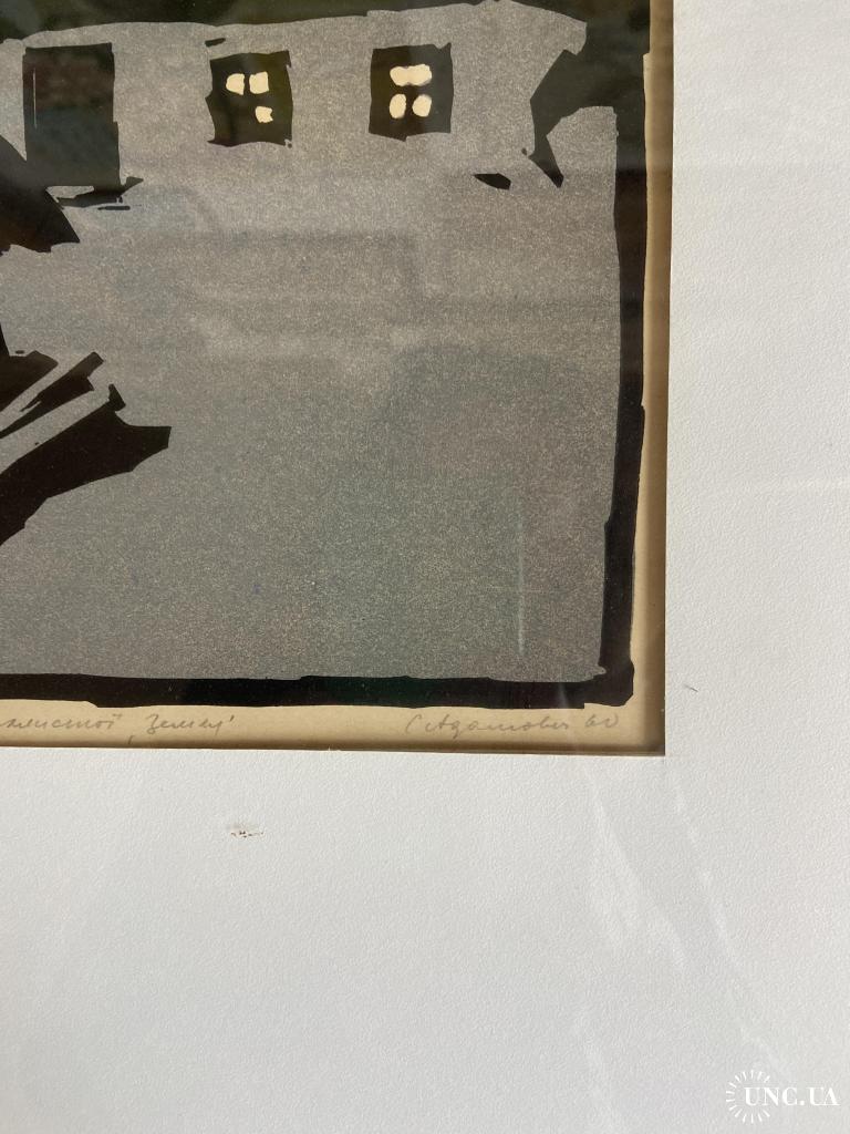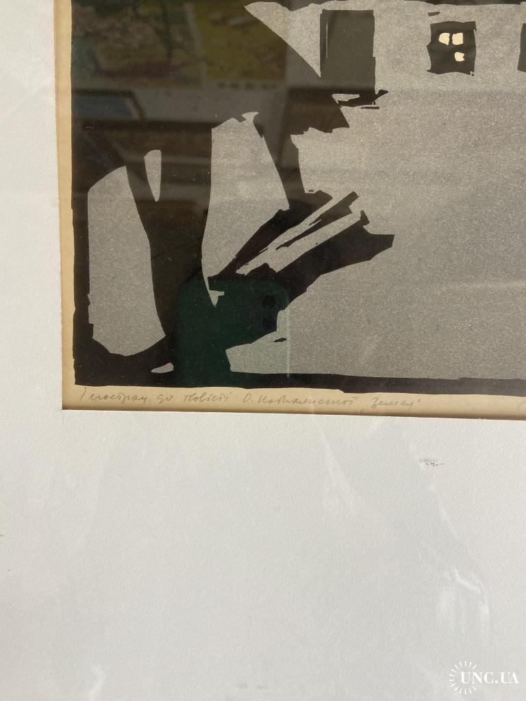 1941-1960Ілюстрація до повісті О.Кобилянської «Земля». Ліногравюра «Хата» видатного українського графіка Адамовича Сергія Тадейовича. Авторські підписи присутні. Стан збереження ідеальний, з оригінального оформлення не виймалась.