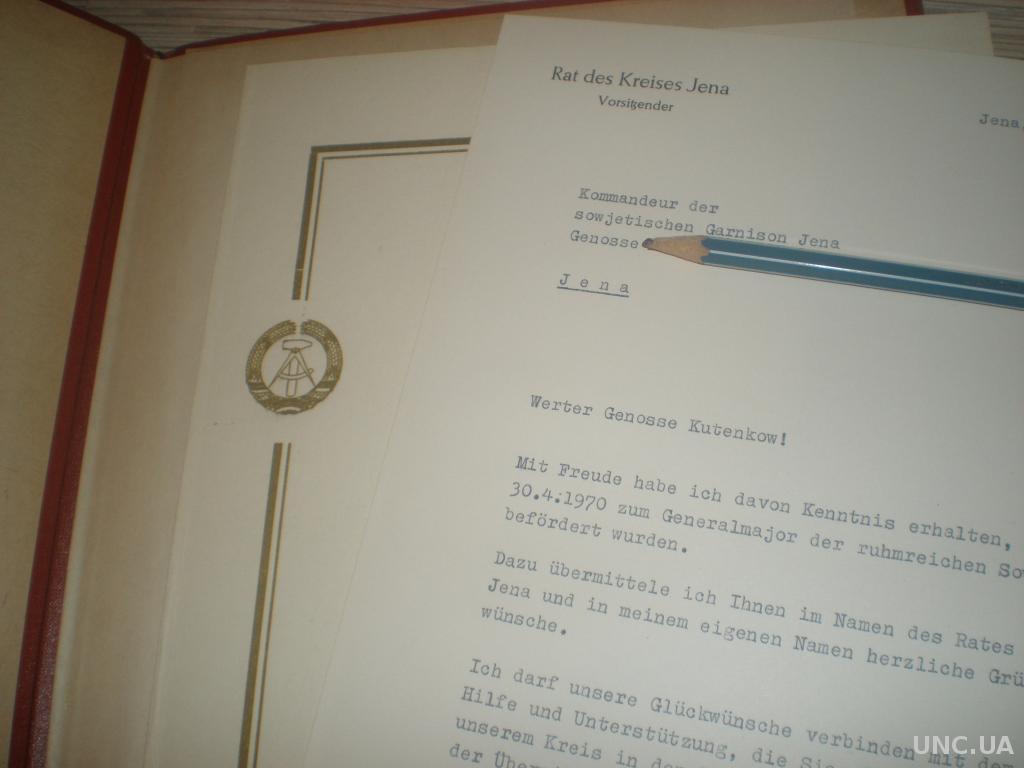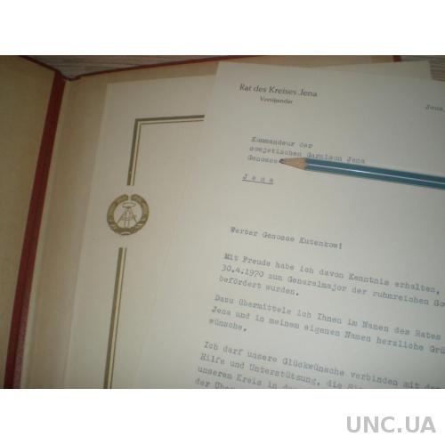 Адрес офицеру ГСВГ (в будущем начальник Харьковского танковогоучилища) от муниципалитета
