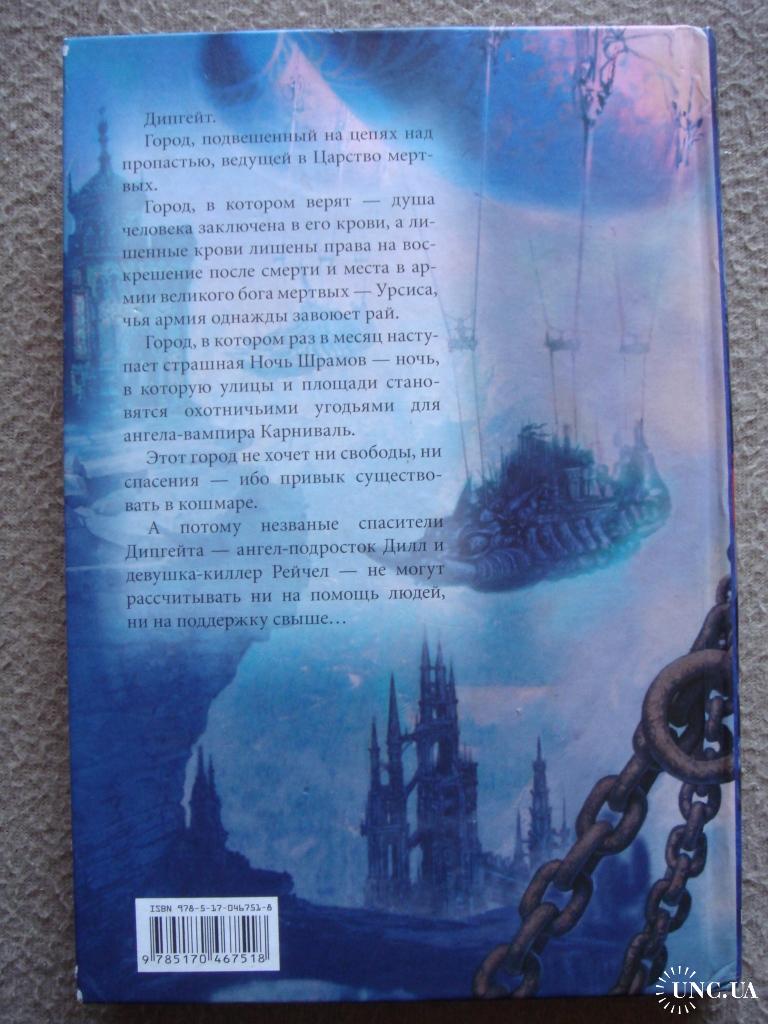 Дипгейт. Город, подвешенный на цепях над пропастью, ведущей в Царство мертвых. Город, в котором верят – душа человека заключена в его крови, а лишенные крови лишены права на воскрешение после смерти и места в армии великого бога мертвых – Урсиса, чья армия однажды завоюет рай. Город, в котором раз в месяц наступает страшная Ночь Шрамов – ночь, в которую улицы и площади становятся охотничьими угодьями для ангела-вампира Карниваль. Этот город не хочет ни свободы, ни спасения – ибо привык существовать в кошмаре. А поэтому незваные спасители Дипгейта – ангел-подросток Дилл и девушка-киллер Рейчел – не могут рассчитывать ни на помощь людей, ни на поддержку свыше.