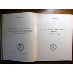 Представленный сегодня Вашему вниманию редкий малотиражный богато илллюстрированный альбом- каталог 1968 года издания подробно знакомит с произведениями мелкой пластики Древней Руси периода ХI-ХVI веков.Их сохранилось очень мало, эти чудом дошедшие до наших дней маленькие шедевры теперь стоят баснословные деньги на мировых аукционах антиквариата и производят при непосредственном рассмотрении неповторимое впечатление прикосновения к истокам - верный признак высочайшего искусства.