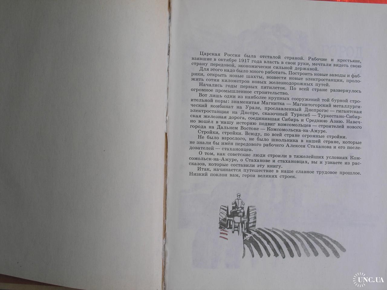 Рассказы о стройках пятилеток, об удивительной поре грандиозных свершений во всех областях народной жизни, о том, как возвели на берегах Амура город юности - Комсомольск, о трудовых подвигах Стаханова, Мазая, Виноградовых и Ангелиной. Сергей Петрович Алексеев, (01.04.1922 - 2008). Русский писатель. Рассказы и повести для детей, в т.ч. «Секретная просьба. Рассказы о В.И. Ленине» (1968), «Богатырские фамилии» (1978: Государственная премия СССР, 1984). Главный редактор журнала «Детская литература» (с 1965).