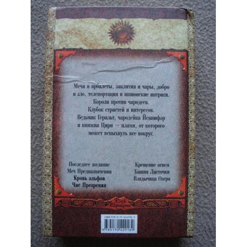 Мечи Геральта из Ривии по-прежнему остры, а на белом свете не стало меньше чудовищ, пусть далеко не все они – клыкастые монстры. И все же мир, знакомый читателям по первым двум книгам цикла, стремительно меняется. Забудьте о камерности и сказочности! На передний план выходят эпичный размах, высокая политика и… ожидание большой беды. Короли и военачальники, маги и наемники, люди и нелюди ведут сложную игру, не жалея ни себя, ни противника. И в центре этой игры – она: наследная княгиня Цинтры, воспитанница ведьмаков Каэр Морхена и чародейки Йеннифэр из Венгерберга, Предназначение Белого Волка. Дитя Старшей Крови. Льющейся все чаще крови эльфов…