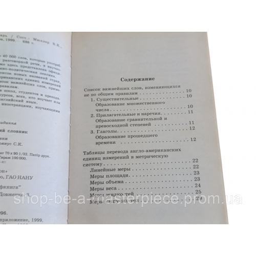 В словаре приведены список новых названий стран, таблица перевода англо-американских единиц измерений в метрическую систему, список важнейших слов, применяющихся не по общим правилам.