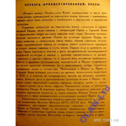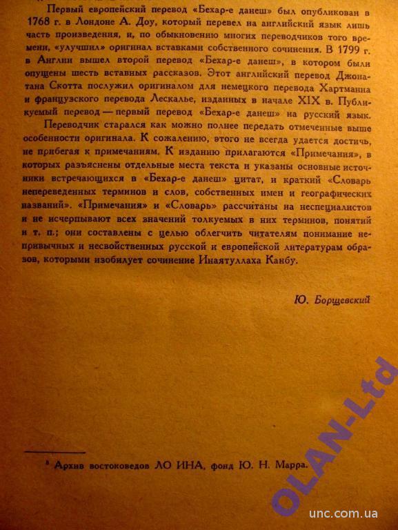 Первый европейский перевод«Бехар-е данеш» был опубликован в 1768 г. в Лондоне А.Доу, который перевел на английский язык лишь часть произведения. Предлагаемая сегодня Вашему вниманию редкая книга - это первый полный перевод знаменитого на Востоке сочинения Инаятуллаха Канбу на русский язык.