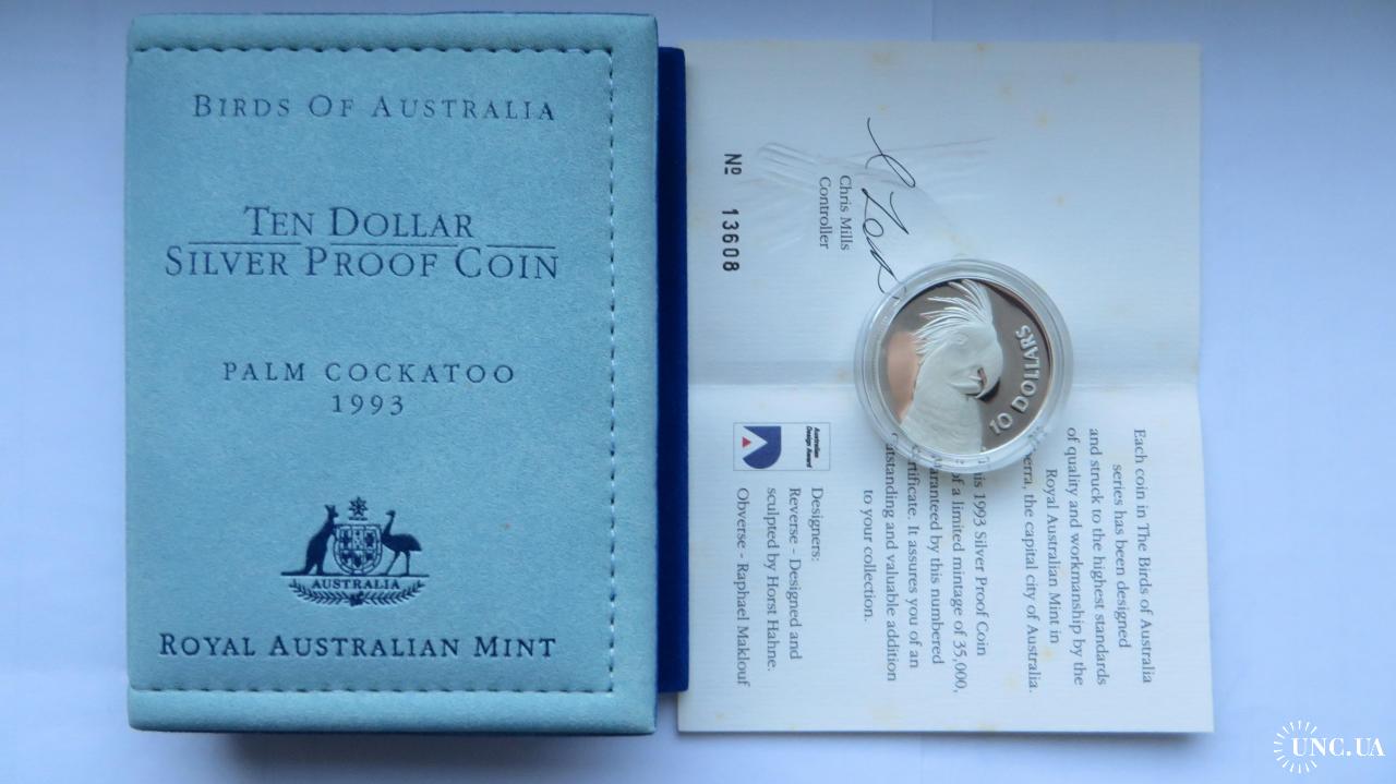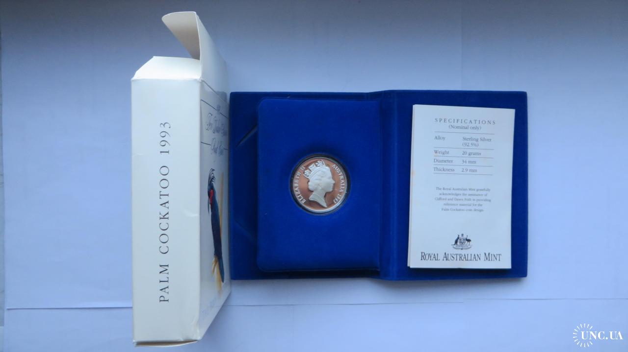 ОригіналАвстралія 10 доларів 1993р. Пальмовий какаду 20 грам срібло 925 PROOF комплект