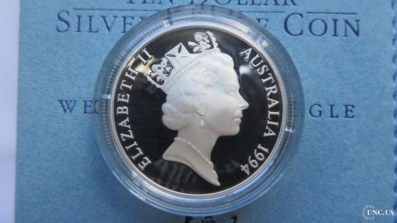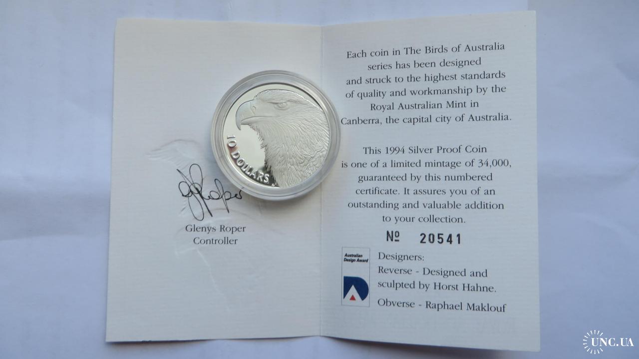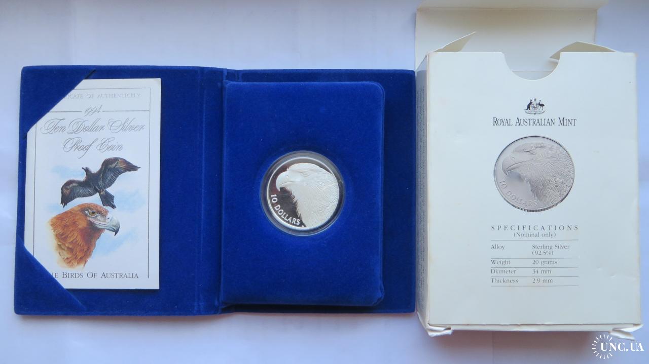 ОригіналАвстралія 10 доларів 1994р. Клинохвостий орел 20 грам срібло 925 PROOF повний комплект