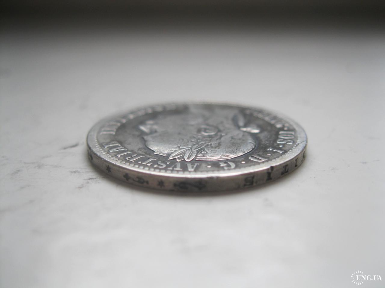 ОригіналФранц Иосиф I.Период правления:Австро-венгерский гульден (1857 - 1892) Серебро .Оригинал. (из обращения)