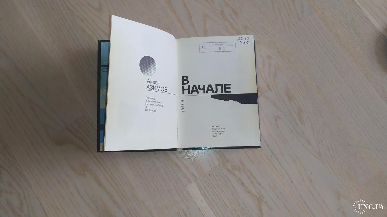 Азимов Айзек. В начале. М. Политиздат. 1989г. 374 с., ил. Твердый переплет, уменьшенный формат.,