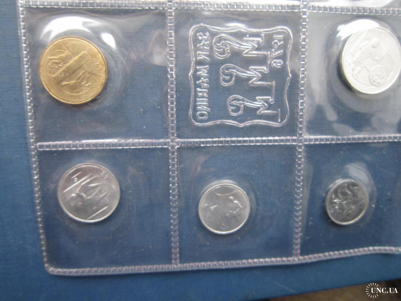 Банківський набор 7 монет 100-50-20-10-5-2-1 лір Сан-Маріно 1976 UNC запайка