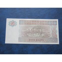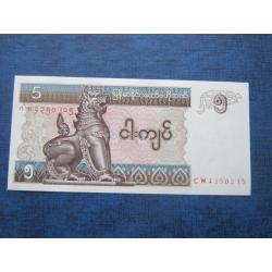 Банкнота 5 кьят Мьянма Бирма 1994 UNC пресс