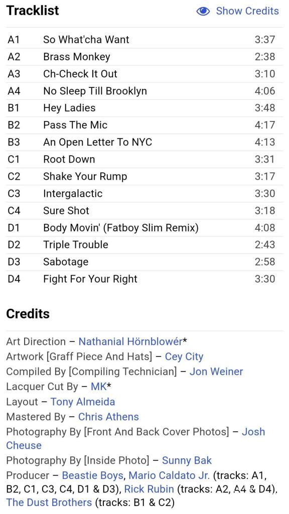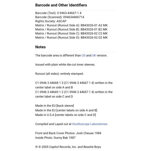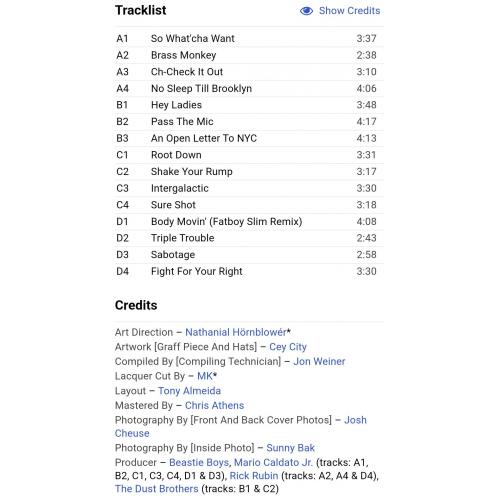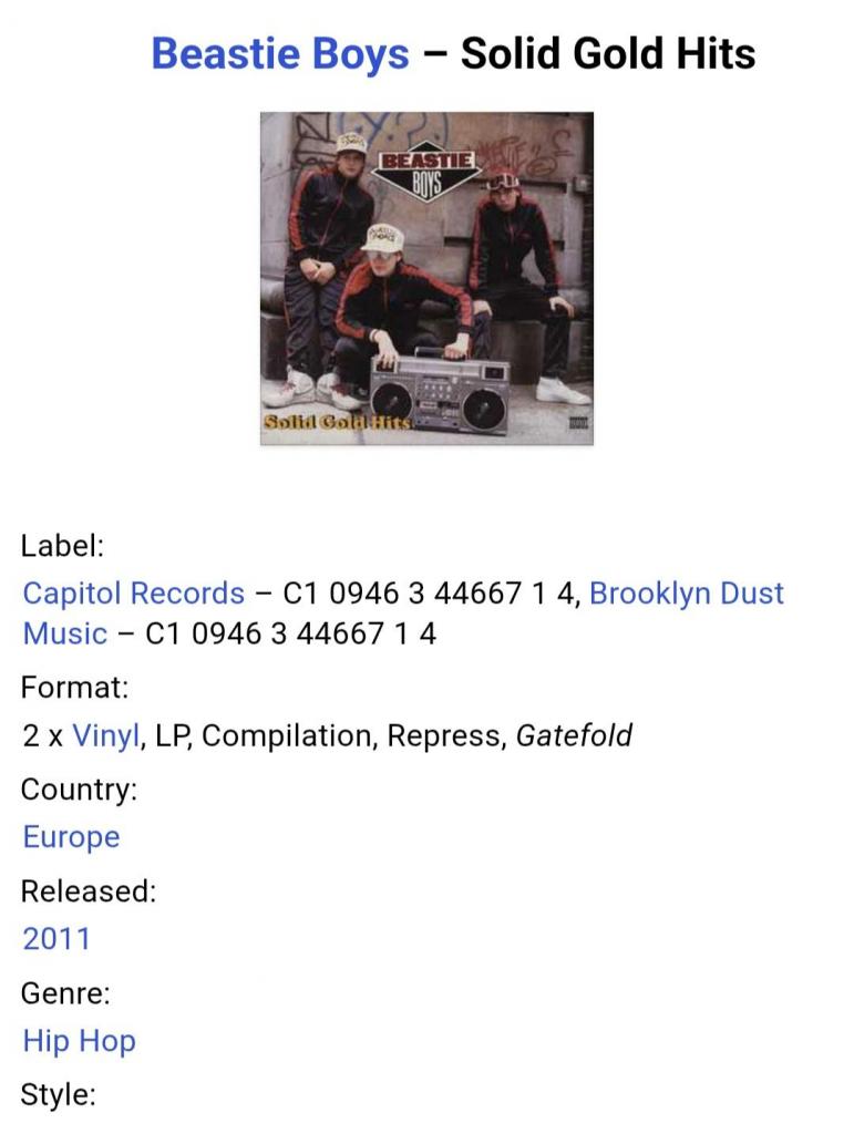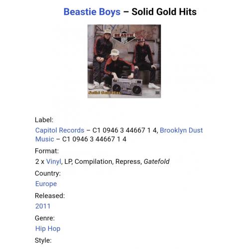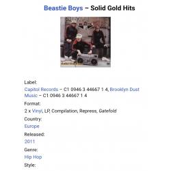 Вінілові платівки. Офіційна збірка найкращих хітів, яка вперше була випущена в 2005-му році, Американської хіп-хоп, хардкор-панк, фанк-рок групи Bastie Boys, яка складалась на той період з учасників Джона Беррі, Майкла Даймонда, Кейта Шелленбаха, Адама Яук та Адама Хоровітца (Solid Gold Hits Hits) 1986-98. Випуск фірми (Capitol Records / Brooklyn Dust Music / Universal Music) Europe, 2011-ий рік. Видання з двох платівок (2LP). Нове, запаковане. Категорія S/S. Відправка по Україні службами доставки: Нова Пошта, Укр Пошта, Делівері. Також відправляємо посилки за кордон по цілому світу.