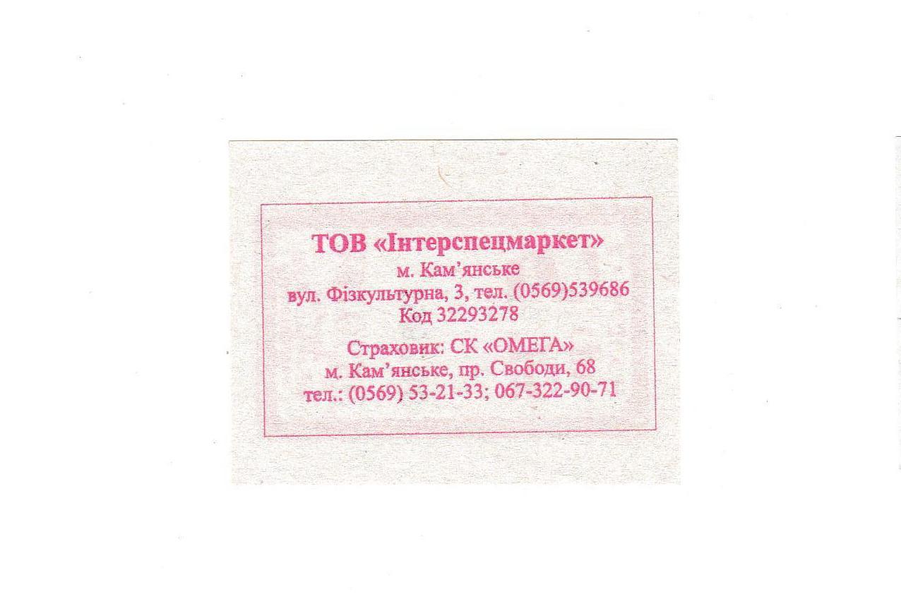 2001-2020Билет Кам'янське, автобус.