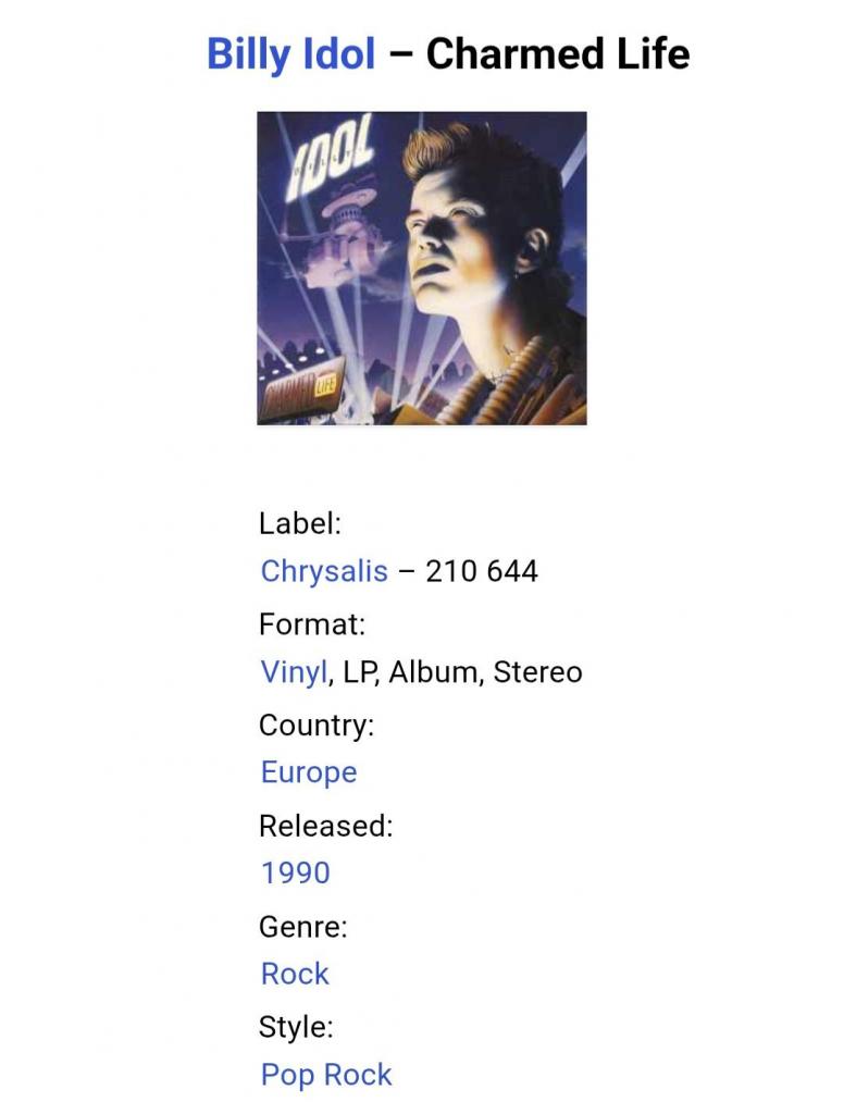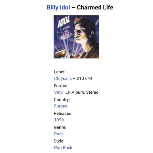 Вінілова платівка. Четвертий, в дискографії, студійний альбом, Англо-Американського хард-рок, пост-панк музиканта, бувшого лідера групи Generation X, Вільяма Майкла Альберта Броуд, більше відомого під сценічним ім,ям Billy Idol (Charmed Life) 1990. Випуск фірми (Chrysalis) Europe, 1990-ий рік. Оригінальне, першопресове Європейське видання. Стан платівки ЕХ+. Конверт глянцевий. Стан конверту ЕХ+. В комплекті внутрішня вставка (OIS). Відправка по Україні службами доставки: Нова Пошта, Укр Пошта, Делівері. Також відправляємо посилки за кордон по цілому світу.