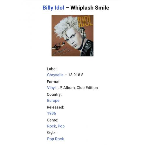 Вінілова платівка. Третій, в дискографії, студійний альбом, Англо-Американського хард-рок, пост-панк музиканта, бувшого лідера групи Generation X, Вільяма Майкла Альберта Броуд, більше відомого під сценічним ім,ям Billy Idol (Whiplash Smile) 1986. Випуск фірми (Chrysalis) Europe, 1986-ий рік. Оригінальне, клубне, першопресове Євррпейське видання. (Club Edition). Лімітований тираж (Limited Edition). Рідкісне (Rare). Стан платівки ЕХ+. Конверт глянцевий. Стан конверту ЕХ+. В комплекті внутрішня вставка (OIS). Відправка по Україні службами доставки: Нова Пошта, Укр Пошта, Делівері. Також відправляємо посилки за кордон по цілому світу.