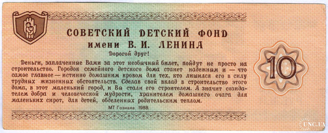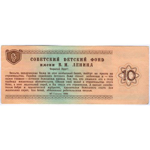 10 Roubles - USSR - Charity ticket of Soviet children's Fund named after V. I. Lenin 1988