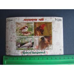 Блок 4 марки Бангладеш 2010 фауна птахи орнітологія MNH