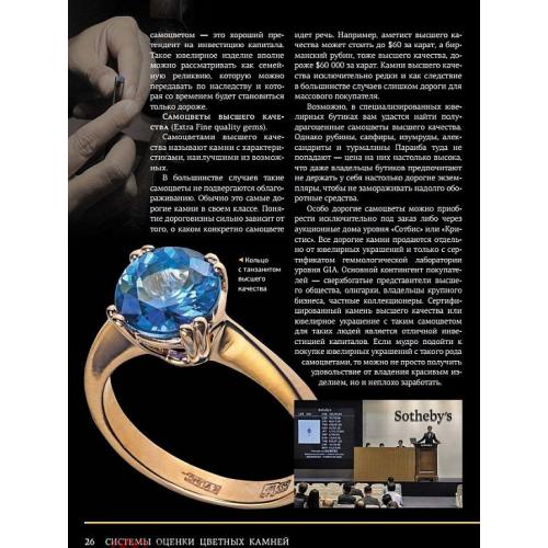 Из этого красочного альбома вы узнаете о том, как самостоятельно оценивать цветные ювелирные камни, как уберечься от обмана при покупке ювелирного украшения с драгоценным камнем, а также ознакомитесь с полной историей самоцветов: кем и когда был открыт тот или иной драгоценный камень и под какими названиями он был известен в разное время. Эта книга будет интересна любой аудитории. Ведь рано или поздно практически любой человек на Земле задумывается о покупке ювелирного изделия с красивым камнем. Возможно, та информация, которую вы почерпнете из книги, при покупке понравившегося ювелирного изделия сэкономит вам значительную сумму денег... и некоторое количество нервных клеток, которые, как известно, не восстанавливаются.