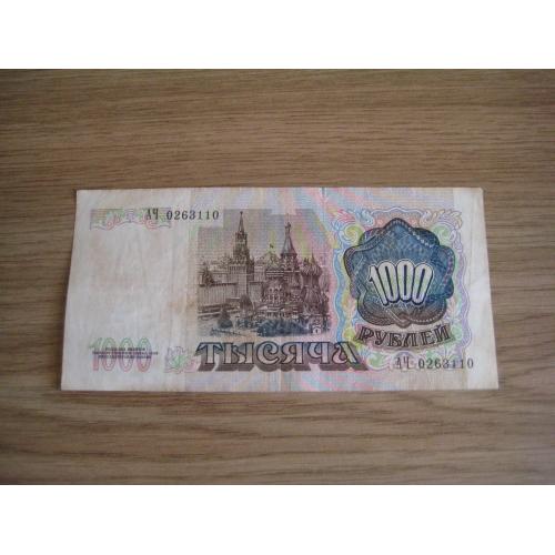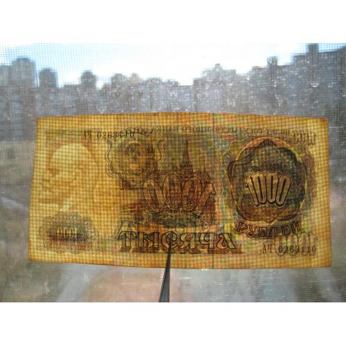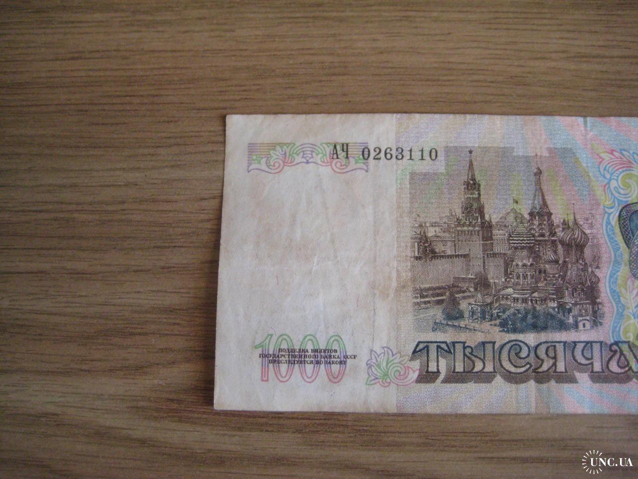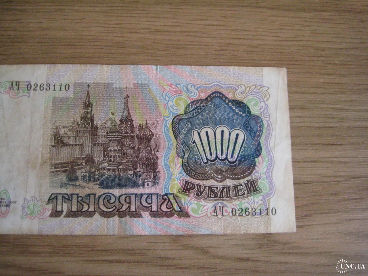 №852. Оригинальная бона - 1000 рублей (АЧ 0263110) 1991 СССР. Состояние прошу оценивать по фото. Размер:7х14,3см. Пересылка - Новой почтой, Укрпочтой. Для киевлян возможность встречи и просмотра (воскр. метро Нивки). В РФ и Белоруссию не отправляю!