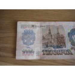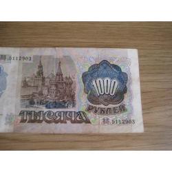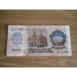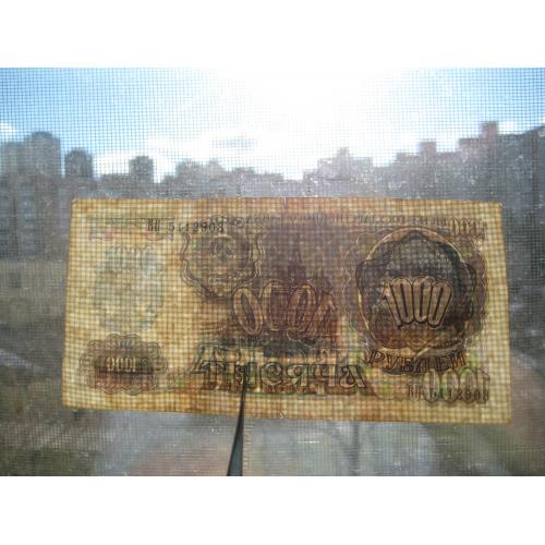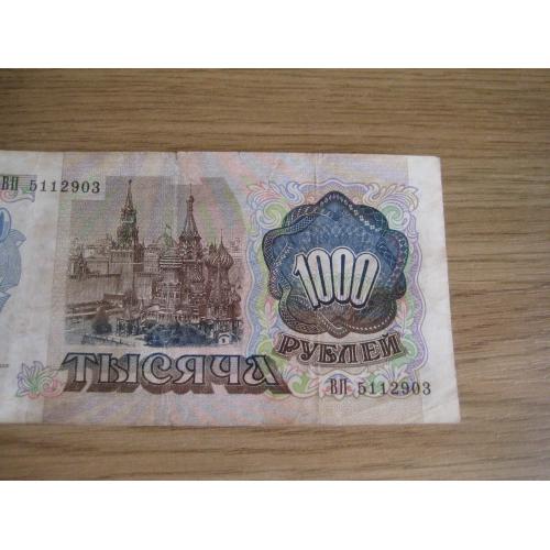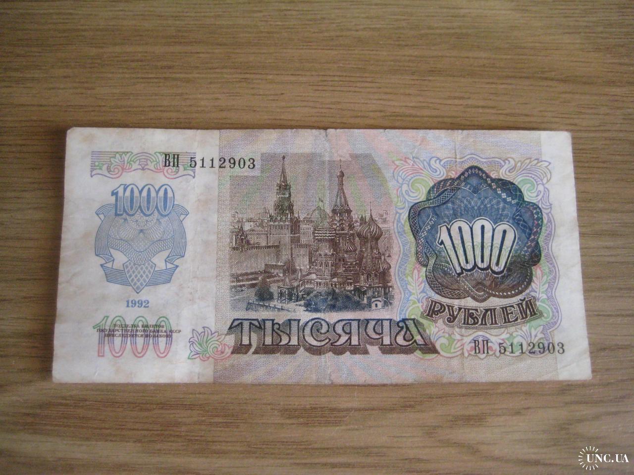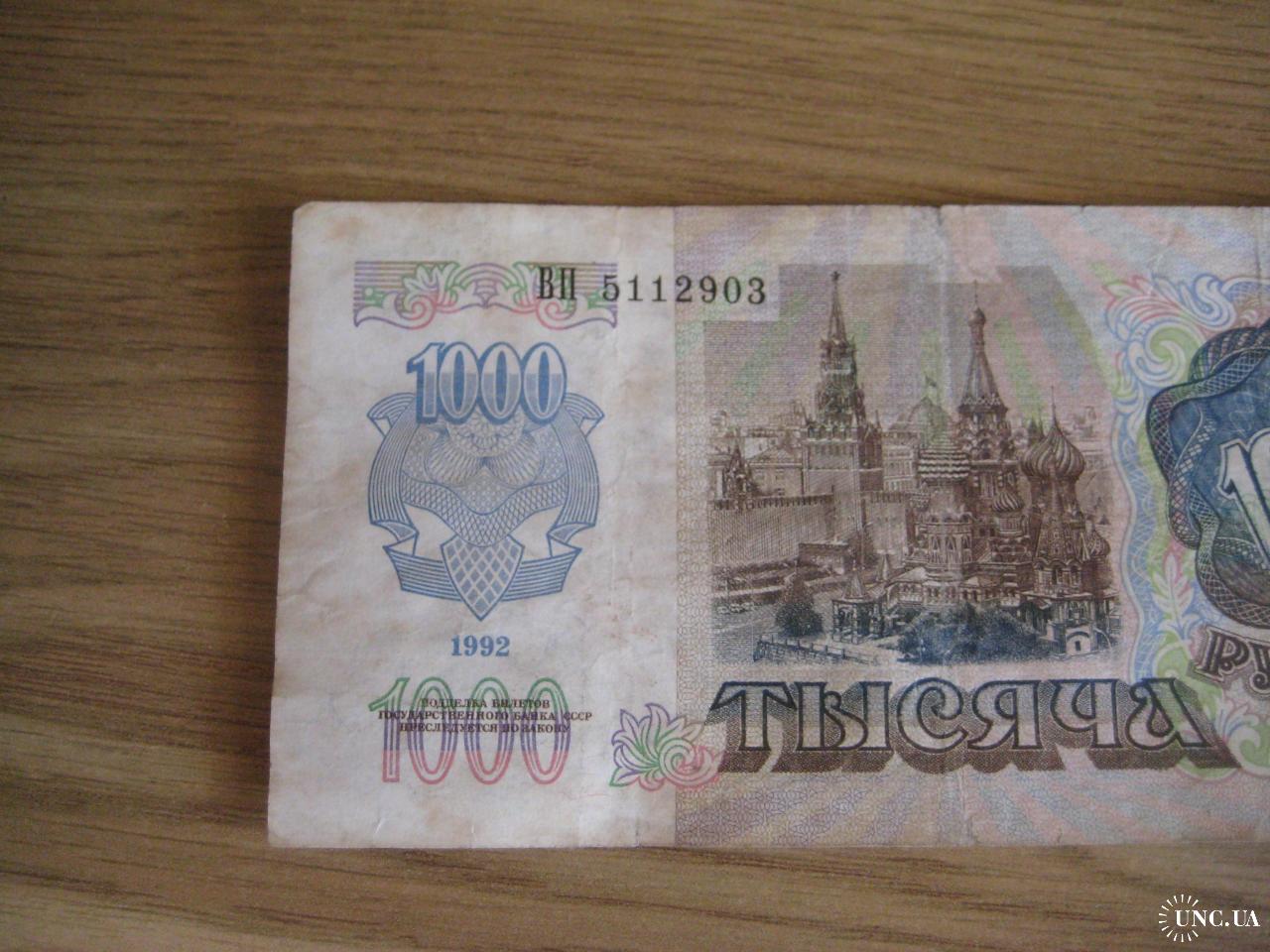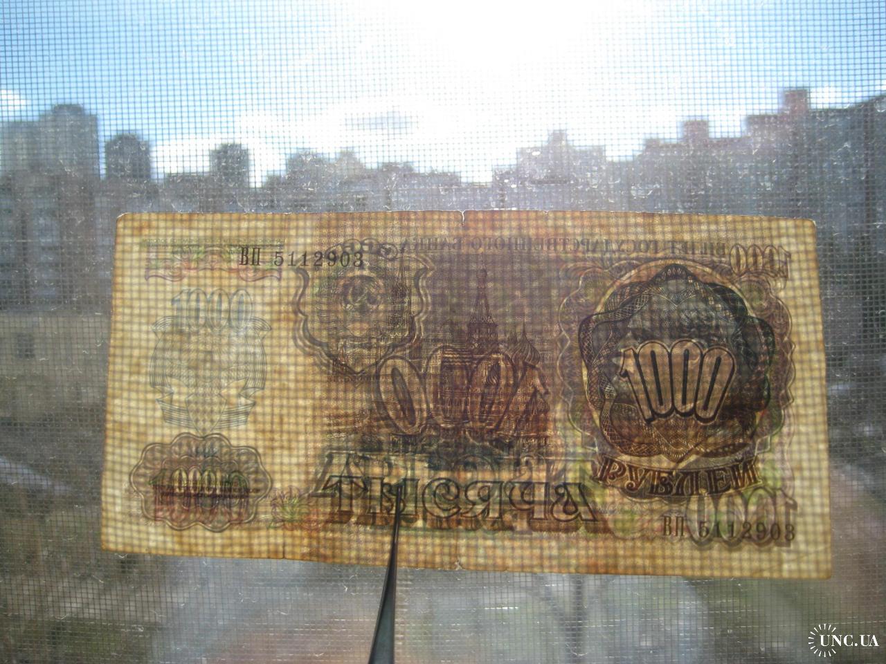 №854. Оригинальная бона - 1000 рублей (ВП 5112903) 1992 СССР. Состояние прошу оценивать по фото. Размер:6,9х14,3см. Пересылка - Новой почтой, Укрпочтой. Для киевлян возможность встречи и просмотра (воскр. метро Нивки). В РФ и Белоруссию не отправляю!