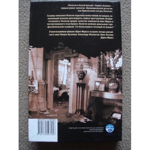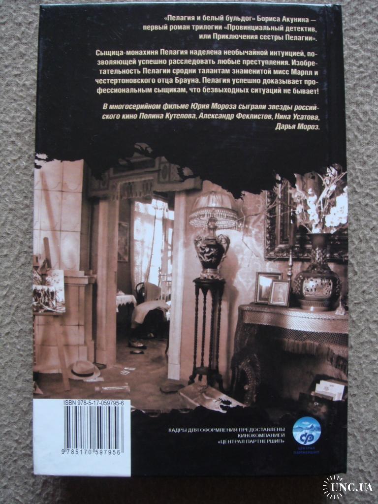 «Пелагия и белый бульдог» Бориса Акунина — первый роман трилогия «Провинциальный детектив, или Приключения сестры Пелагии». Роман переведен на множество иностранных языков. А теперь приключения сыщицы-монашки Пелагии в городе Заволжске можно увидеть и на экране! В фильме Юрия Мороза главные роли сыграли Полина Кутепова, Александр Феклистов, Нина Усатова.