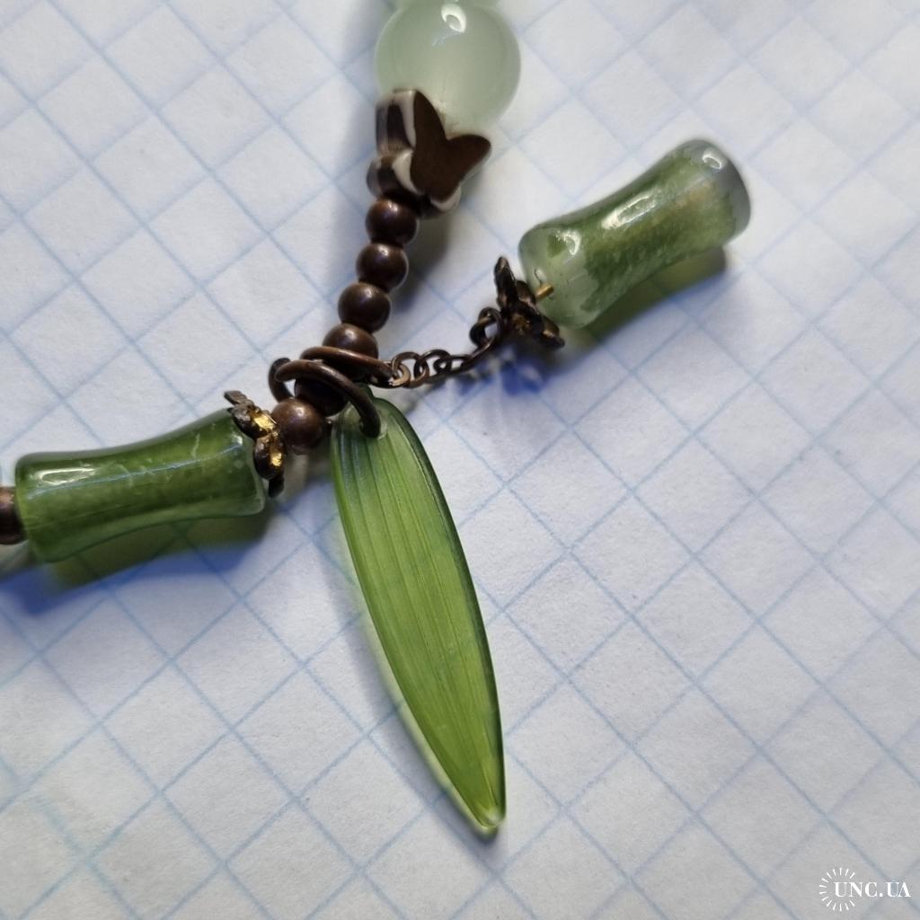 В деяких місцях є потертості та сліди часу. Намистини цілі, еластична нитка не розтягнута.