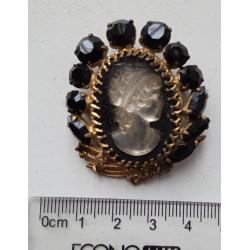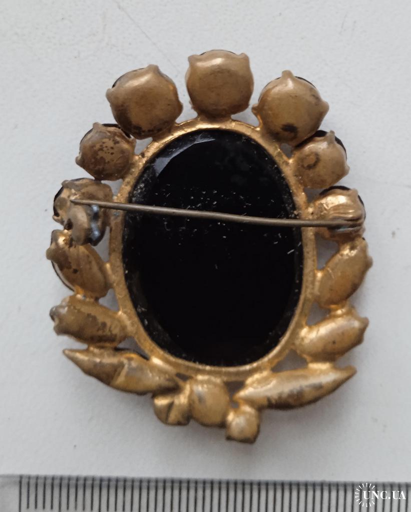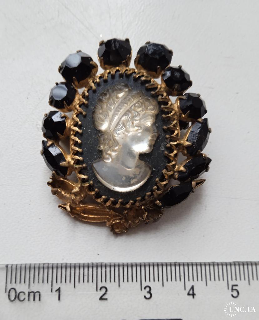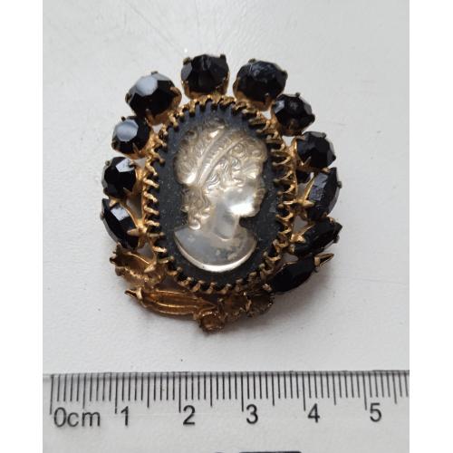 1961-1980Брошь-камея с черными стразами середина ХХ века