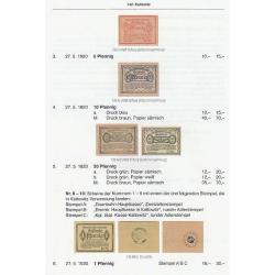 Денежные знаки чрезвычайных обстоятельств (нотгельды) - выпущенных Министерством транспорта Рейха, управлением Reichsbahn и подчиненными ему отделениями, от государственных и частных железных дорог и Рейхспочты. Цветные качественные иллюстрации. Цены в евро.