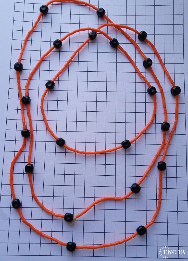 1981-2000Бусы из оранжевого мелкого бисера и крупных черных бусин