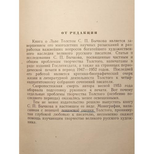 Бычков. Лев Толстой. Очерк творчества. Госиздат худ литературы. 1954 год. Очень хорошее. На некоторых страницах есть подчеркивания простым карандашом.