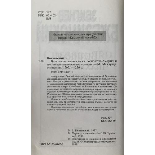 «Великая шахматная доска. Господство Америки и его геостратегические императивы»