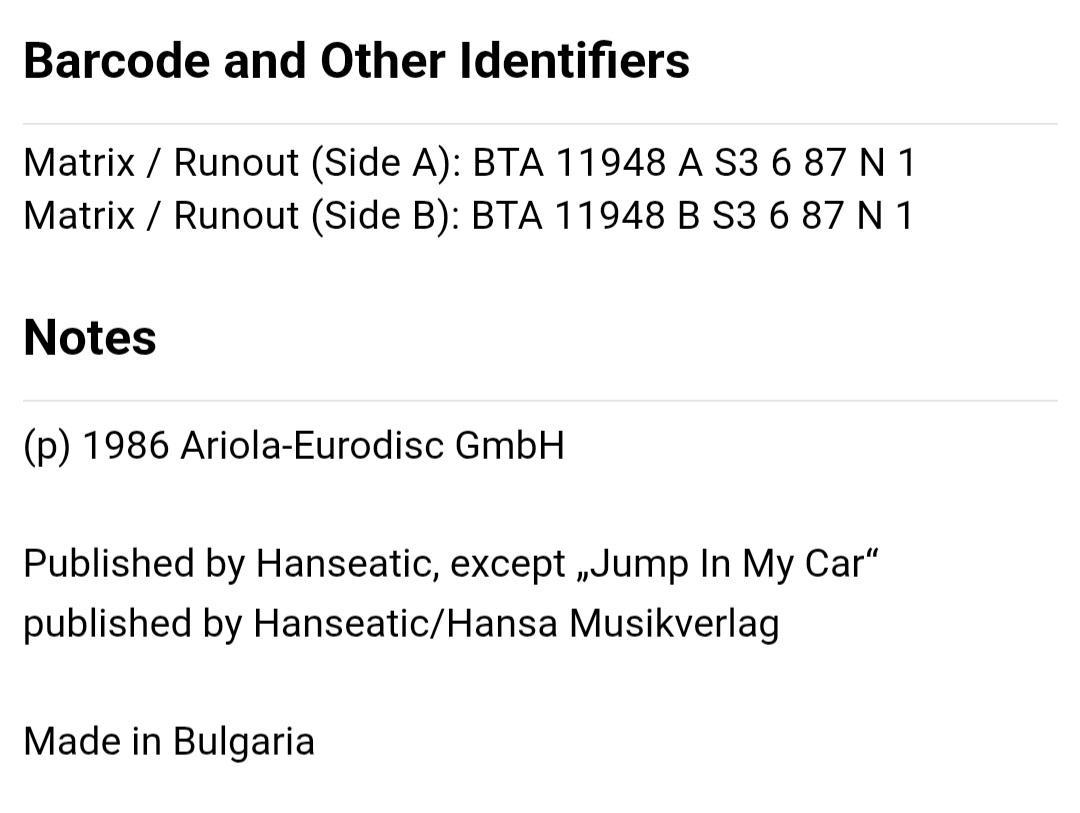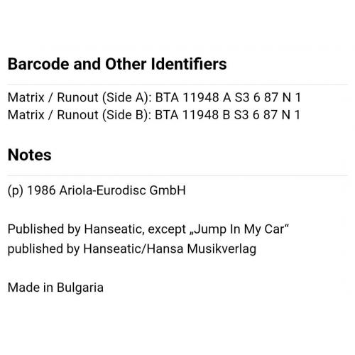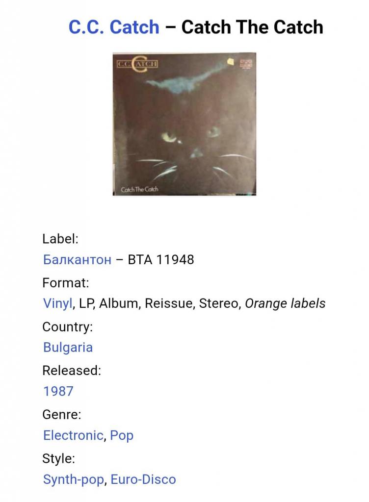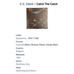 Вінілова платівка. Перший, дебютний, в дискографії, студійний альбом, легендарної Німецької виконавиці Голландського походження, стилю Євро Диско, Кароліни Катерини Мюллер, більше відомої під сценічним ім,ям C.C. Catch (Catch The Catch 1986. Випуск фірми (Balkanton / Hansa) Bulgaria, 1987-ий рік. Оригінальне, Болгарське видання. Стан платівки ЕХ. Стан конверту ЕХ+. Відправка по Україні службами доставки: Нова Пошта, Укр Пошта, Делівері. Також відправляємо посилки за кордон по цілому світу.