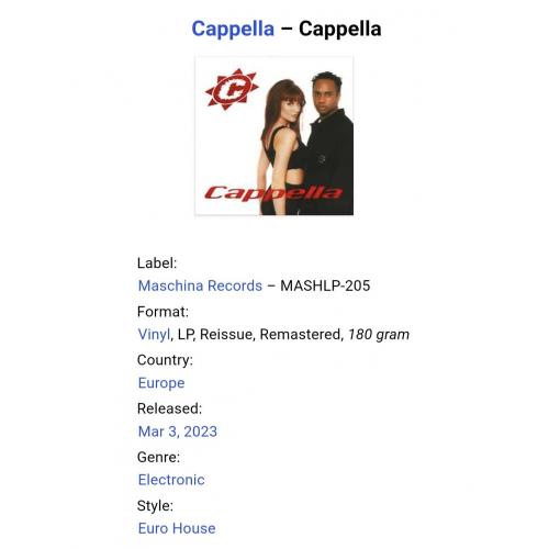 1981-2000Вінілова платівка. П,ятий, в дискографії, студійний альбом, Італійського євро денс, транс, італо денс проекту Cappella, який складався з учасників Келлі Оверетти та Родні Бішопа (Cappella) 1998. Випуск (Maschina Records) Estonia, 2023-ій рік. Лімітований тираж (Limited Edition). Видання нове, запаковане. Категорія S/S. Відправка по Україні службами доставки: Нова Пошта, Укр Пошта, Делівері. Також відправляємо посилки за кордон по цілому світу.