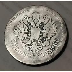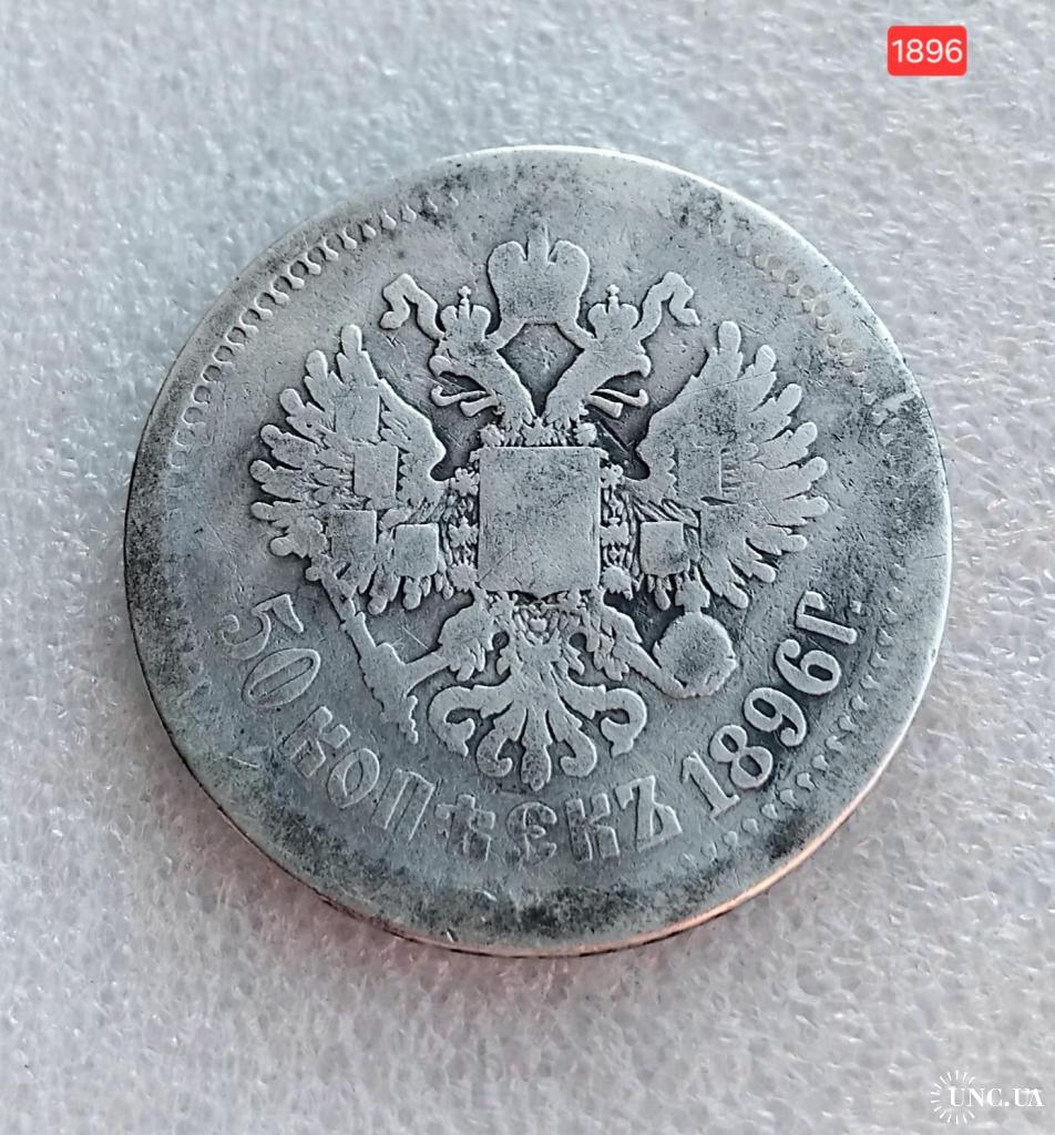 Оригінал☝️Царская монета 50коп. Николай 2'АG-Санкт Петербург'1896г. (серебро 900пр.)Оригинал, гарантия подлинности пожизненная!