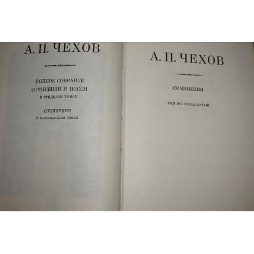 Чехов А.П. Полное собрание сочинений и писем в тридцати томах. Сочинения в 18 томах (16 книг). М. Изд-во Наука. 1974-1982г., 20,5х13,5 см.